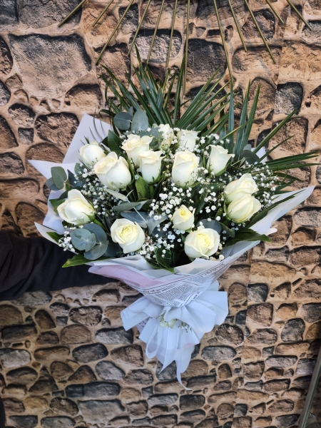 Zarafetin en saf hali, 15 adet seçkin beyaz gül ile hayat buluyor. Nostaljik gazete kağıdı ambalajıyla doğallığı ön plana çıkaran bu özel tasarım, yeni başlangıçların ve sadakatin en şık temsilcisidir. Uzun süre hafızalardan silinmeyecek bir jest yapmak isteyenler için özenle hazırlandı.