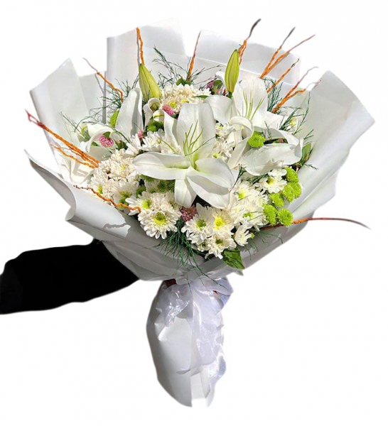 Doğanın en güzel beyazlarını sizin için bir araya getirdik. Kazablanka lilyumun imza kokusu ve papatyaların sempatik duruşuyla hazırlanan bu özel tasarım, en güzel anılarınıza eşlik etmeye hazır.