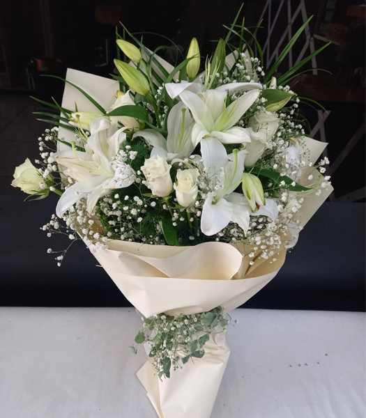 Zarafeti modern bir dokunuşla yeniden yorumladık. Usta ellerde şekillenen bu butik tasarımda, Kazablankaların heykelsi yapısı ile beyaz güllerin kadife dokusu kusursuz bir uyum yakalıyor. Özel dokulu butik kağıtlar ve saten kurdelelerle tamamlanan bu tasarım, estetik tutkunları için ideal.