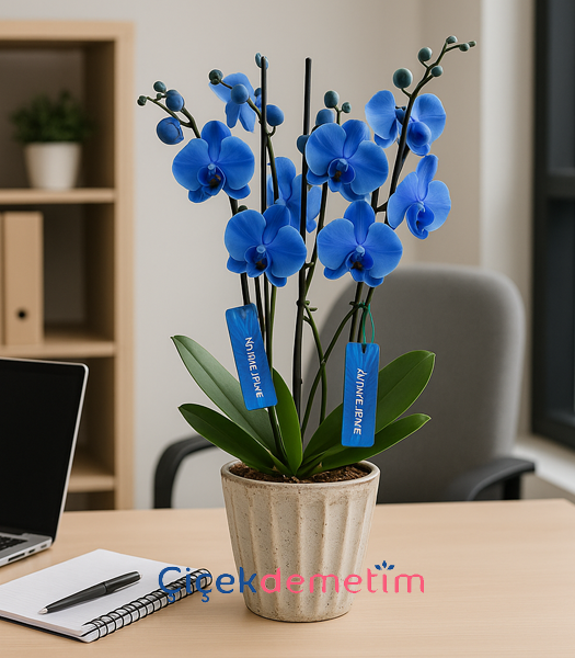 Mavi orkide, huzur, başarı ve yeni başlangıçların sembolüdür. Yeni iş, terfi, doğum günü veya özel kutlamalarda sevdiklerinize zarif bir “tebrik ederim” hediyesi sunmak için mükemmel bir tercihtir. Ofis ortamında estetik bir atmosfer yaratırken, pozitif enerji ve tazelik hissi verir.