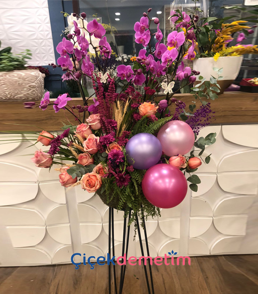 Göz alıcı bir hediye arıyorsanız, bu Orkide ve Gül Balonlu Aranjman tam size göre! Mor orkide, pembe gül ve renkli balonların zarif birleşimiyle tasarlanan bu özel aranjman; enerjik, neşeli ve bir o kadar da zarif bir duruş sergiliyor. Dekoratif ayaklı saksısı sayesinde hem modern hem de gösterişli bir görünüm sunan bu tasarım, özel günlerde fark yaratmak isteyenler için mükemmel bir seçimdir. Bu çiçek aranjmanı, hem sevgi dolu mesajlarınızı iletir hem de bulunduğu ortama pozitif enerji katar.